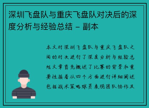 飞盘竞技作为一项新兴的团队运动,近年来在中国尤其是在北京地区迅速崛起。本文将深入解析北京飞盘队的战术布局与团队协作,从魅力、挑战、战术以及团队协作四个方面进行详细阐述。首先,飞盘竞技以其独特的玩法和强烈的竞技性吸引了大量年轻人的参与,这种运动不仅锻炼身体,也促进了团队精神。其次,随着比赛水平的提高,...