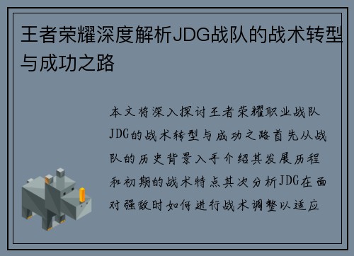 本文将对王者荣耀IG战队在配合创新与战术变革方面进行深入分析与探讨。随着电子竞技的迅猛发展,战队之间的竞争愈发激烈,特别是在王者荣耀这一热门游戏中。IG战队凭借其独特的配合方式和灵活多变的战术布局,在赛场上取得了显著成就。文章将从配合创新、战术变革、选手角色适应性及团队心理素质四个方面进行详细探讨,...